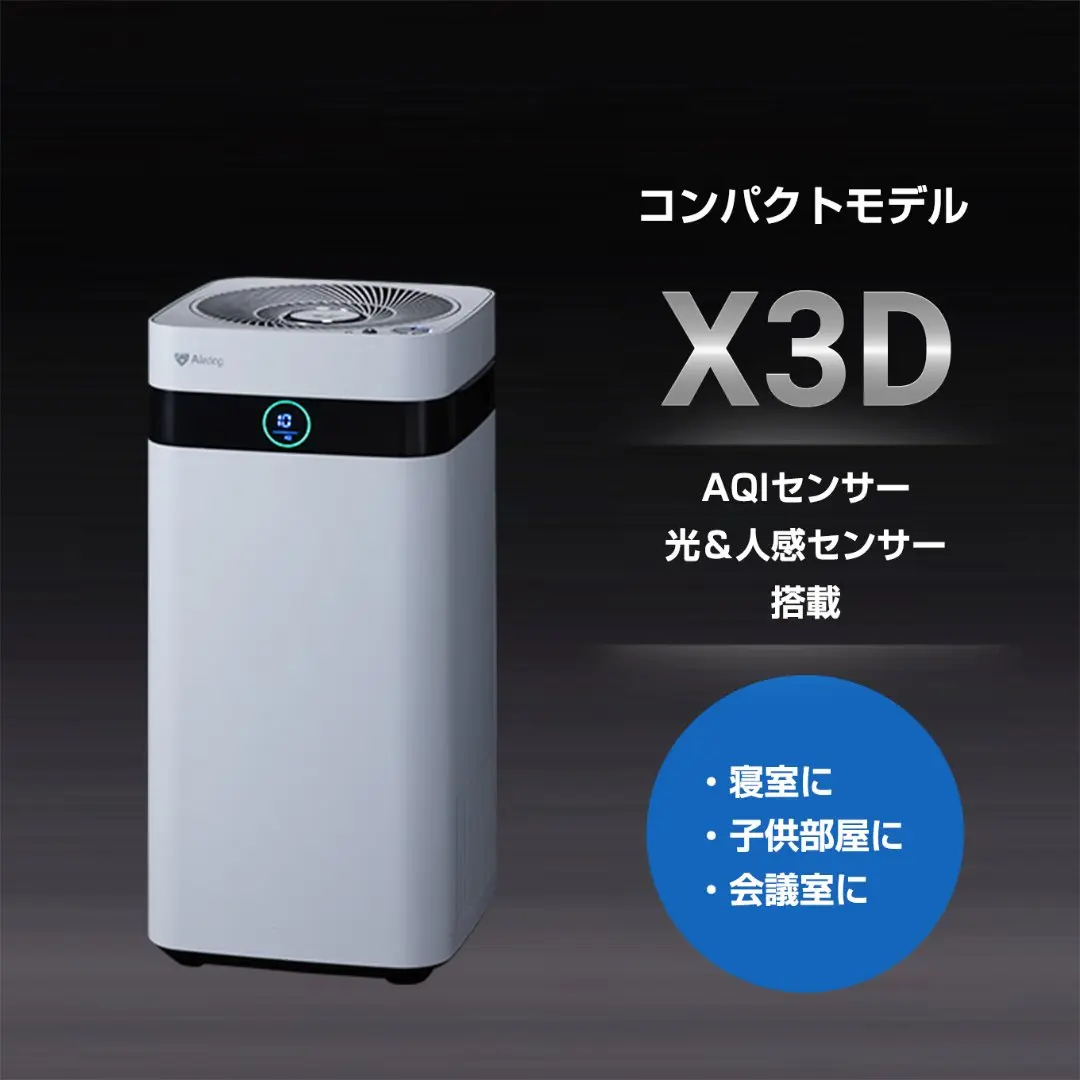 たとえば、「Airdog コンパクトモデル X3D」は、幅27cm・奥行26cm・高さ56cmのスリムなボディながら、17畳程度まで対応できる清浄能力を備えたモデルです。