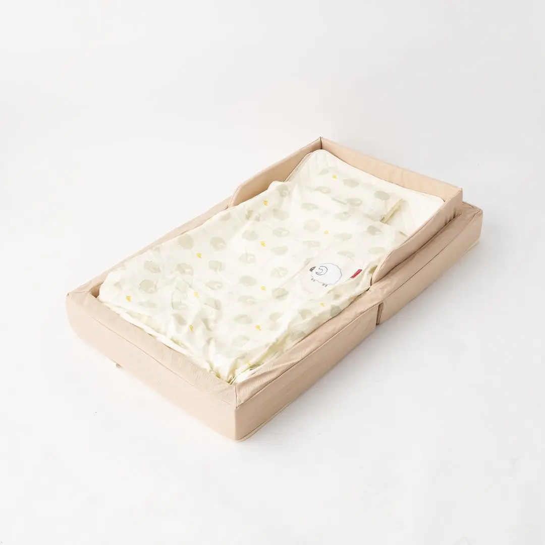ベッドインベッドとは、大人用のベッドや布団の上に置いて、その中で赤ちゃんを寝かせるためのコンパクトな携帯用ベビーベッドです。