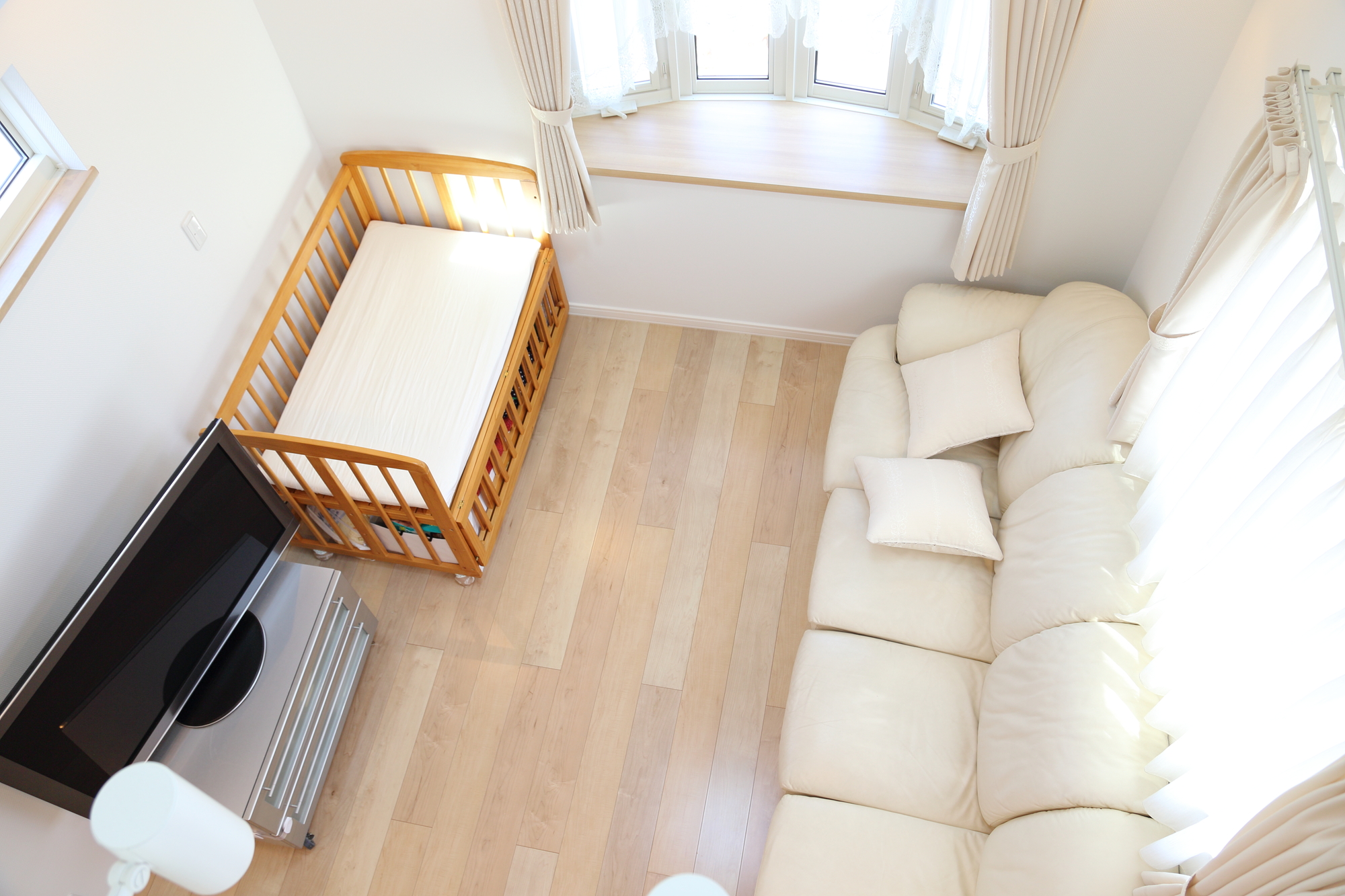 リビングなどの生活音がある空間と、静かなベビーベッドという睡眠空間を分けることで、赤ちゃんのオンとオフが自然に切り替わりやすくなる点もメリットです。