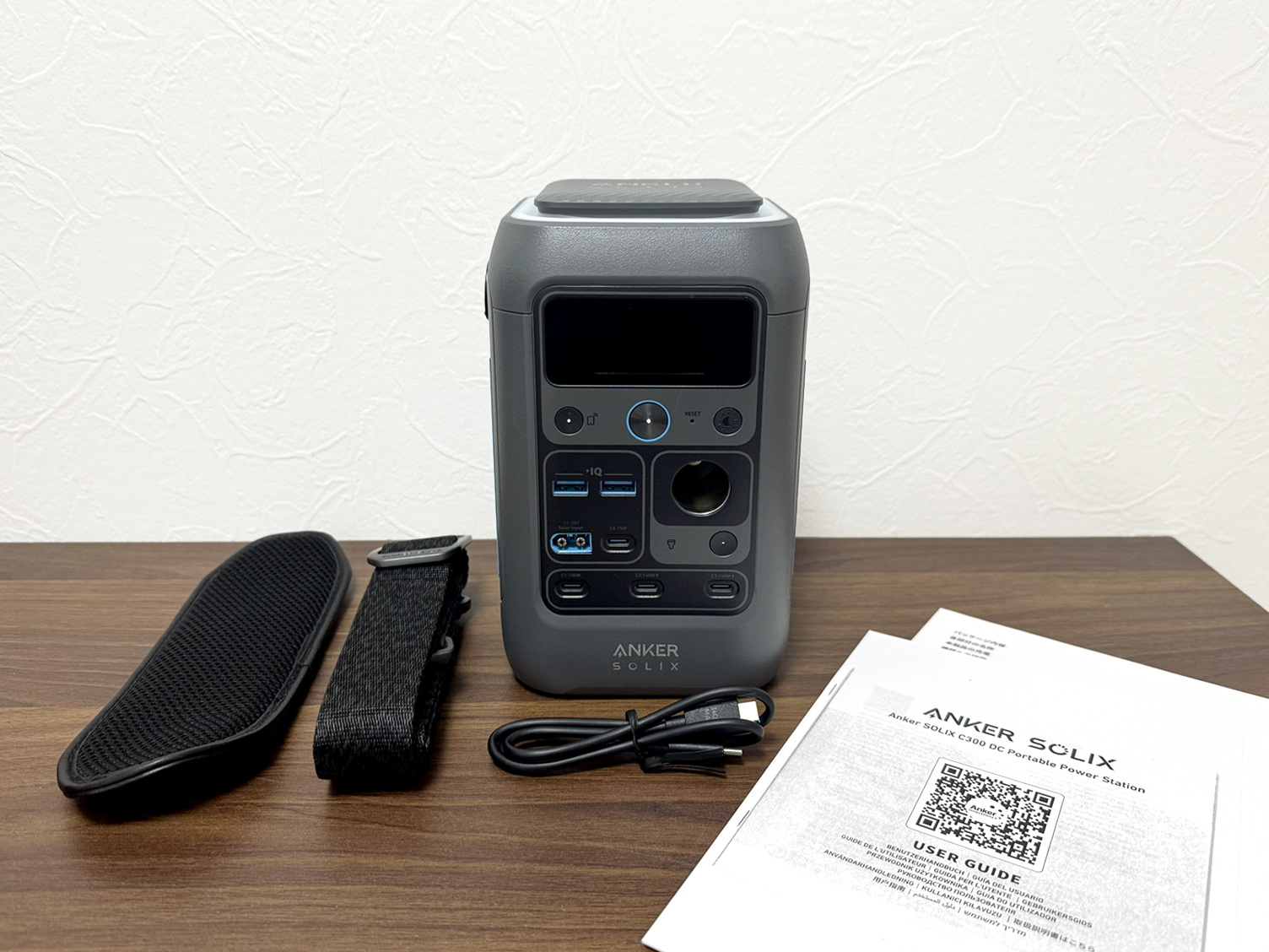 ANKER Solix C300 DCには充電ケーブルが付属していますが、充電器は付属していません。