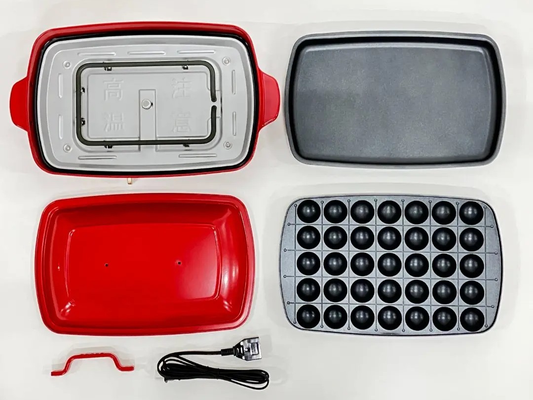 ホットプレートは本体と電源コードのほか、たこ焼き用や平面など多彩な用途に対応し、複数枚のプレートがセットであるケースもあります。