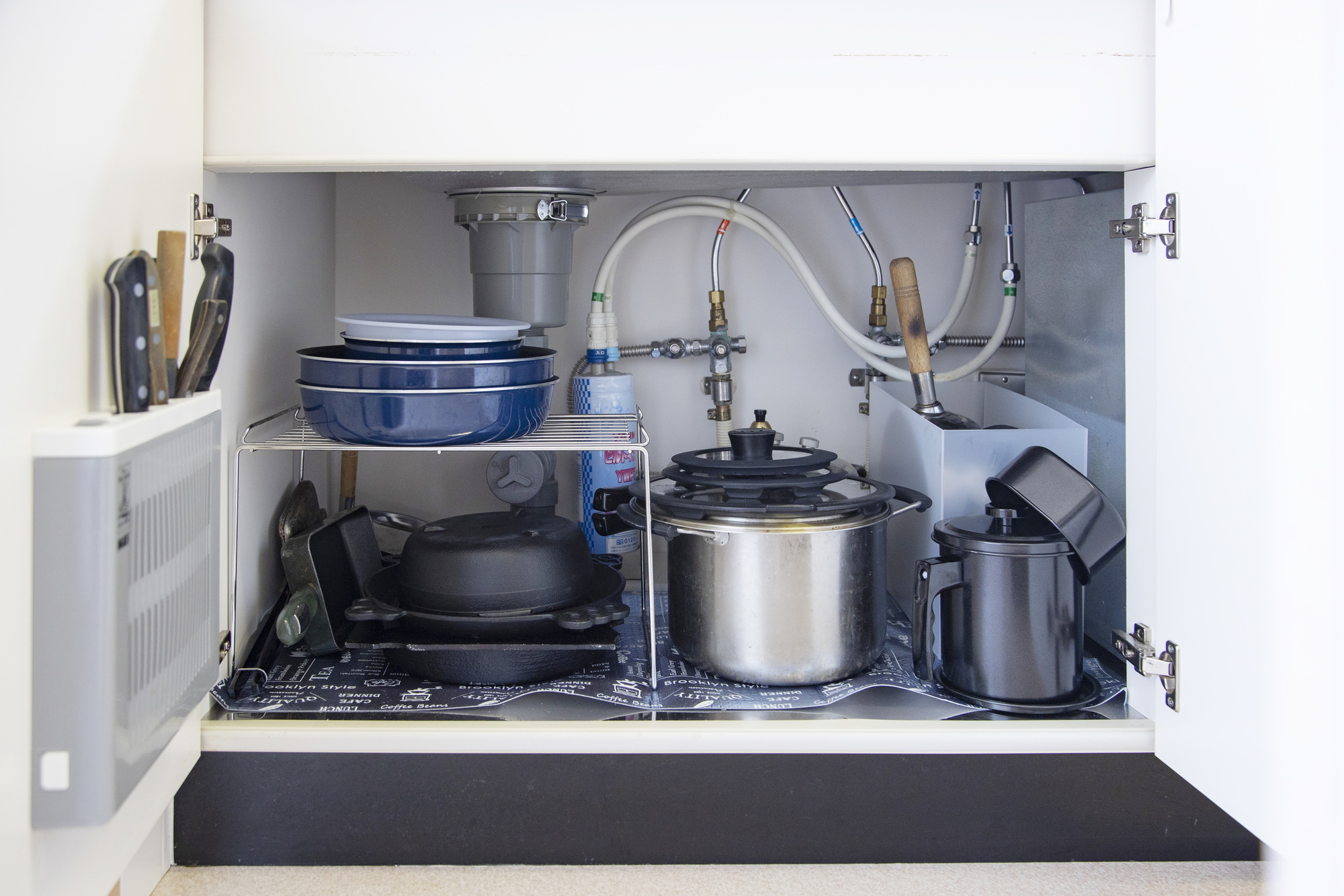 ホットプレートの収納場所としてまずおすすめしたいのが、シンクの下にある収納スペースです。